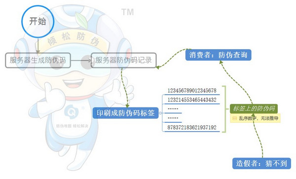 防偽碼是通過防沖突算法隨機生成的,只憑單個或數個商品上的防偽碼,幾乎不可能推導出其他防偽碼,如果直接盜用防偽碼,又會因為重復查詢而被消費者察覺,因此想仿冒防偽碼是有一定難度的。